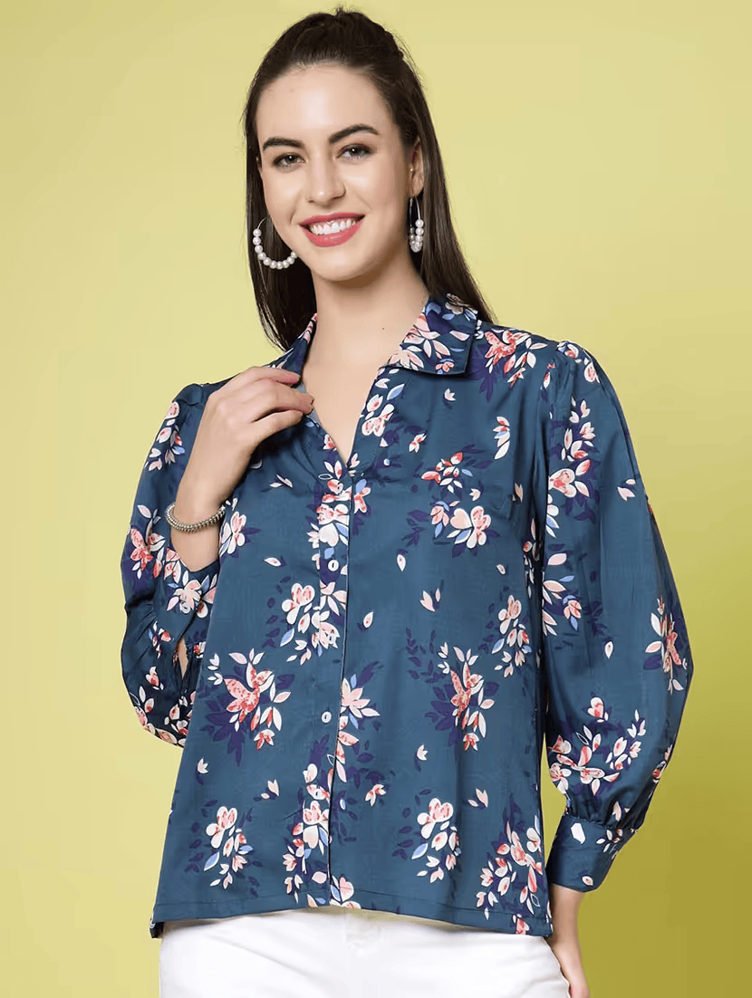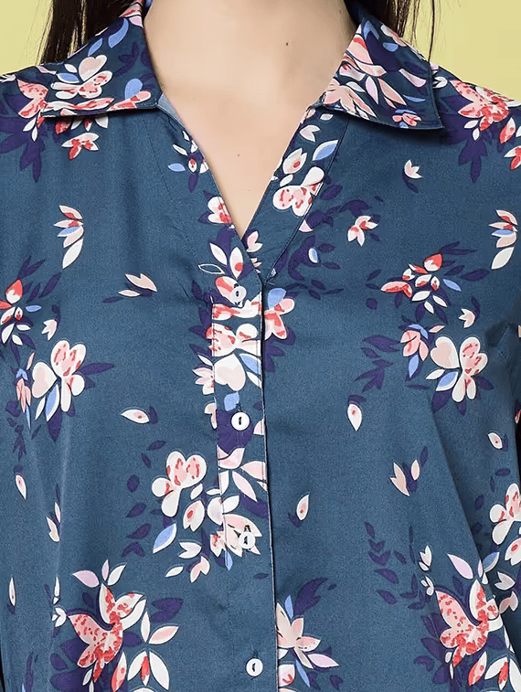 women multi color floral printed polyester regular shirt