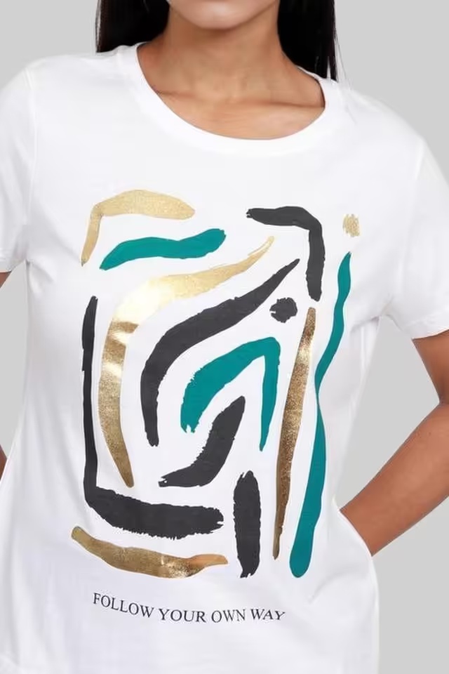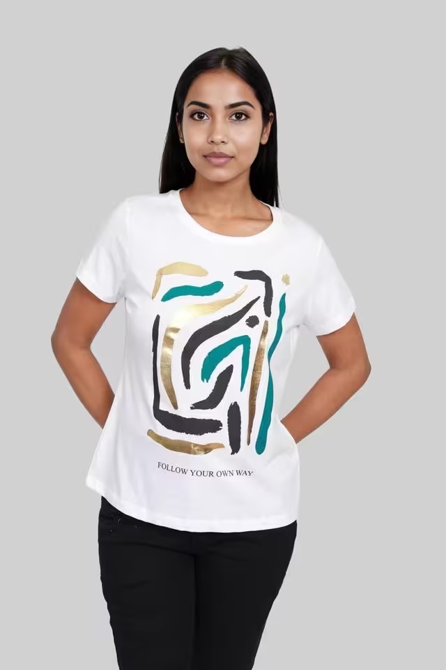 Desinged Round Neck Women's White T-Shirt